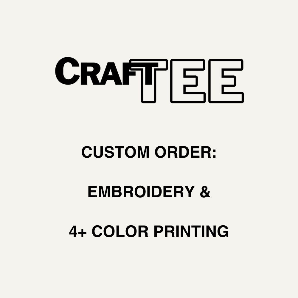 For custom orders with embroidery or prints which use more than 3 colors. Click the link below and fill out the form to start your custom order today!